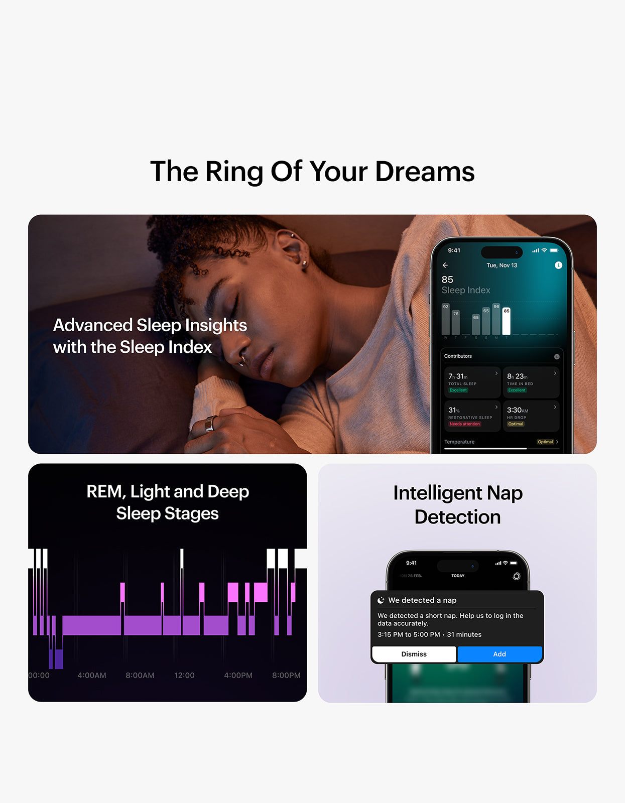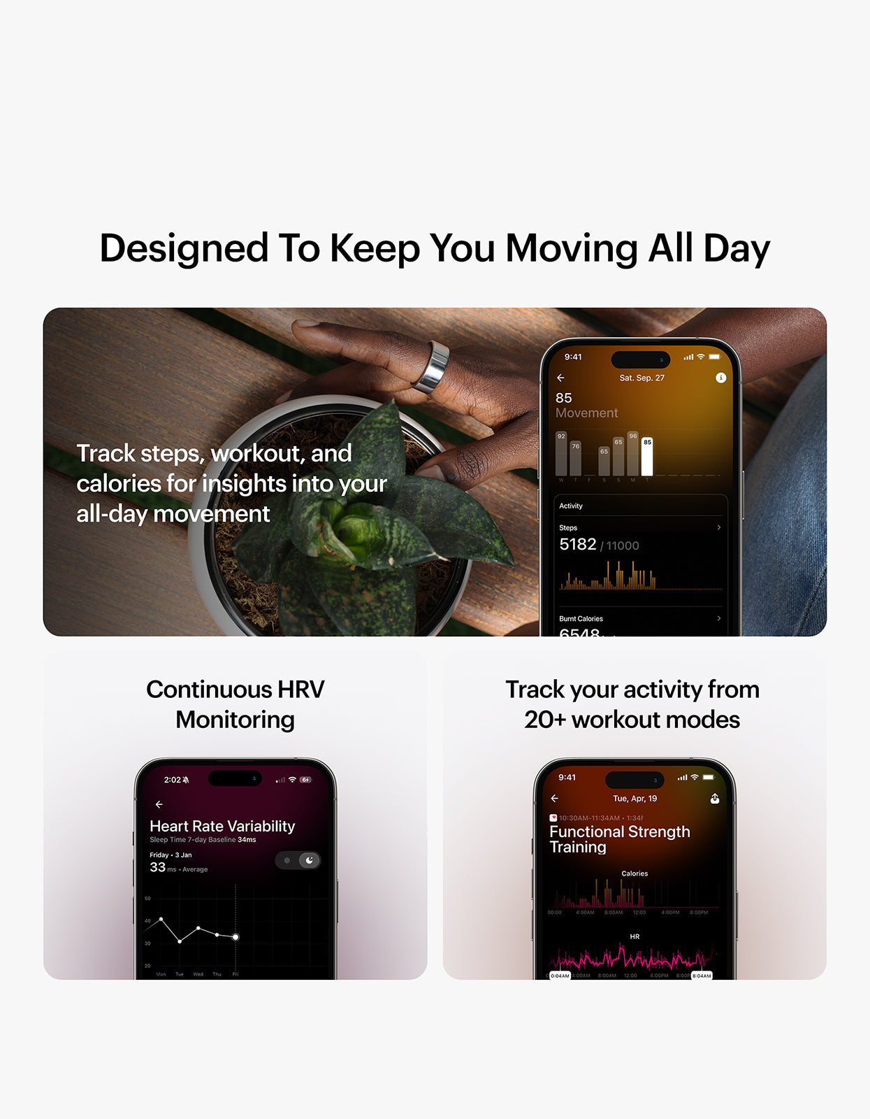 - The ring tracks key metrics like heart rate variability (HRV), sleep quality, body temperature, and physical activity.