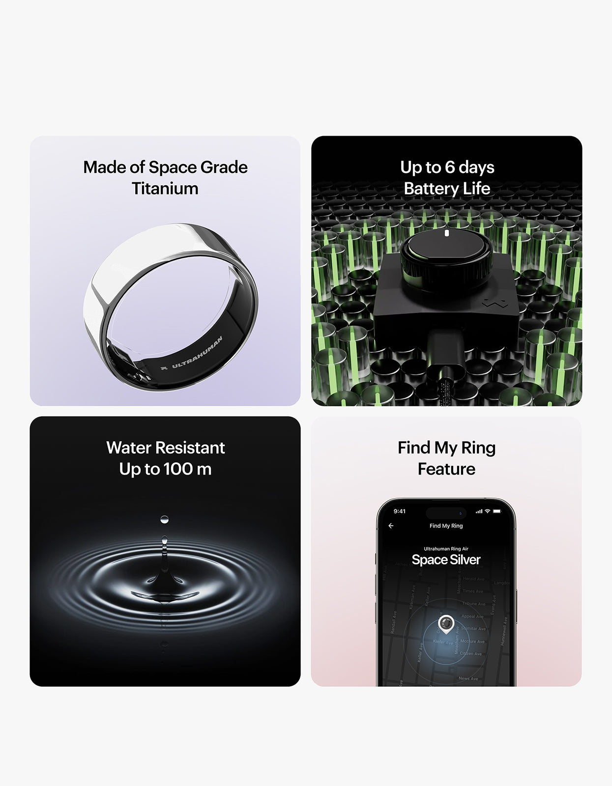 Elevate your health and performance with the Ultrahuman Ring AIR in Space Silver.
