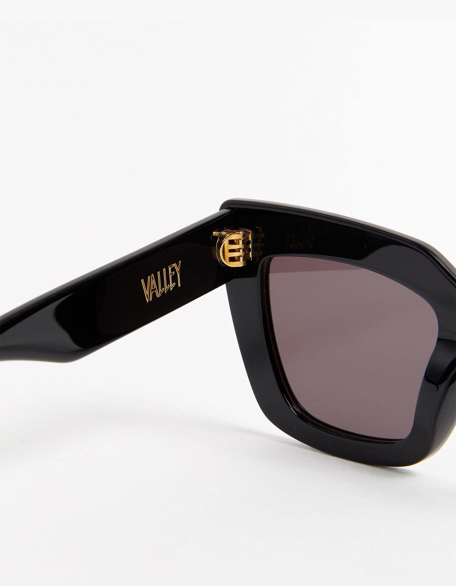 Featuring 24 karat gold hinges, this style encompasses zero base Italian nylon flat lenses making for a super straight frame that will suit most face shapes. The sleek and premium black acetate frames include the signature Valley titanium branding on the arms, making these a must-have item.