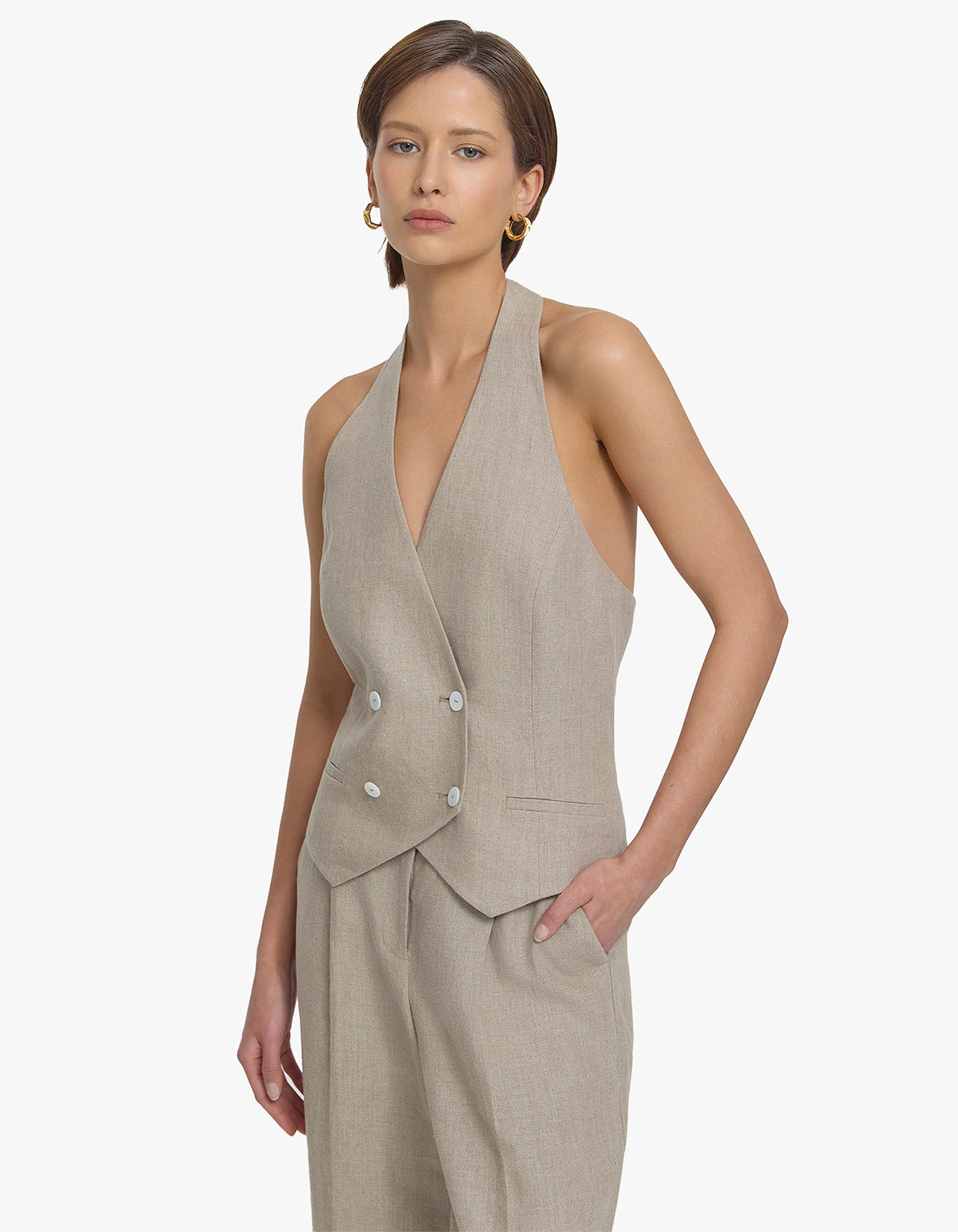 The Cadence Vest in Flax is a must-have wardrobe staple from Viktoria and Woods.