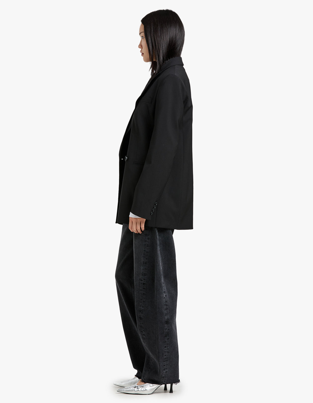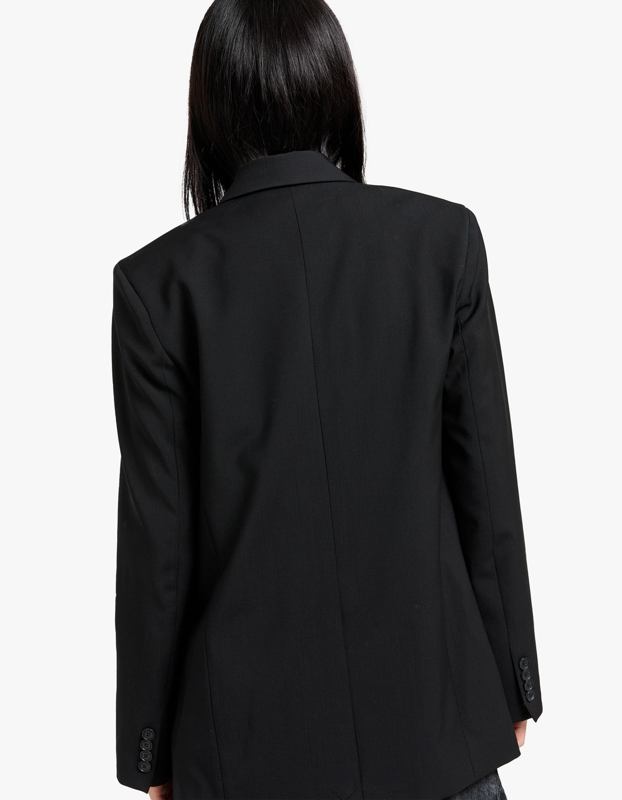 Made from 100% wool, this double-breasted silhouette features a peak lapel, chest and welt pockets for a sophisticated touch. With functional sleeve openings and a back vent, this blazer pairs perfectly with the Jenner Trouser for a complete and timeless ensemble.