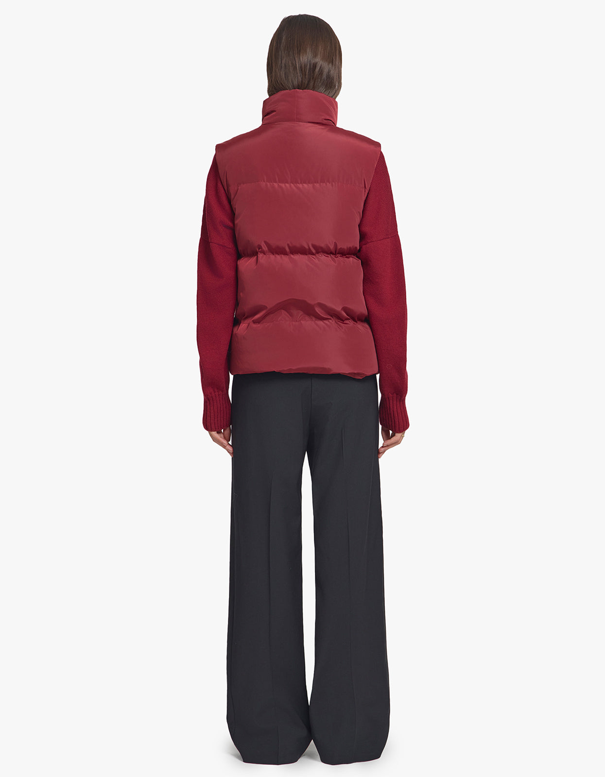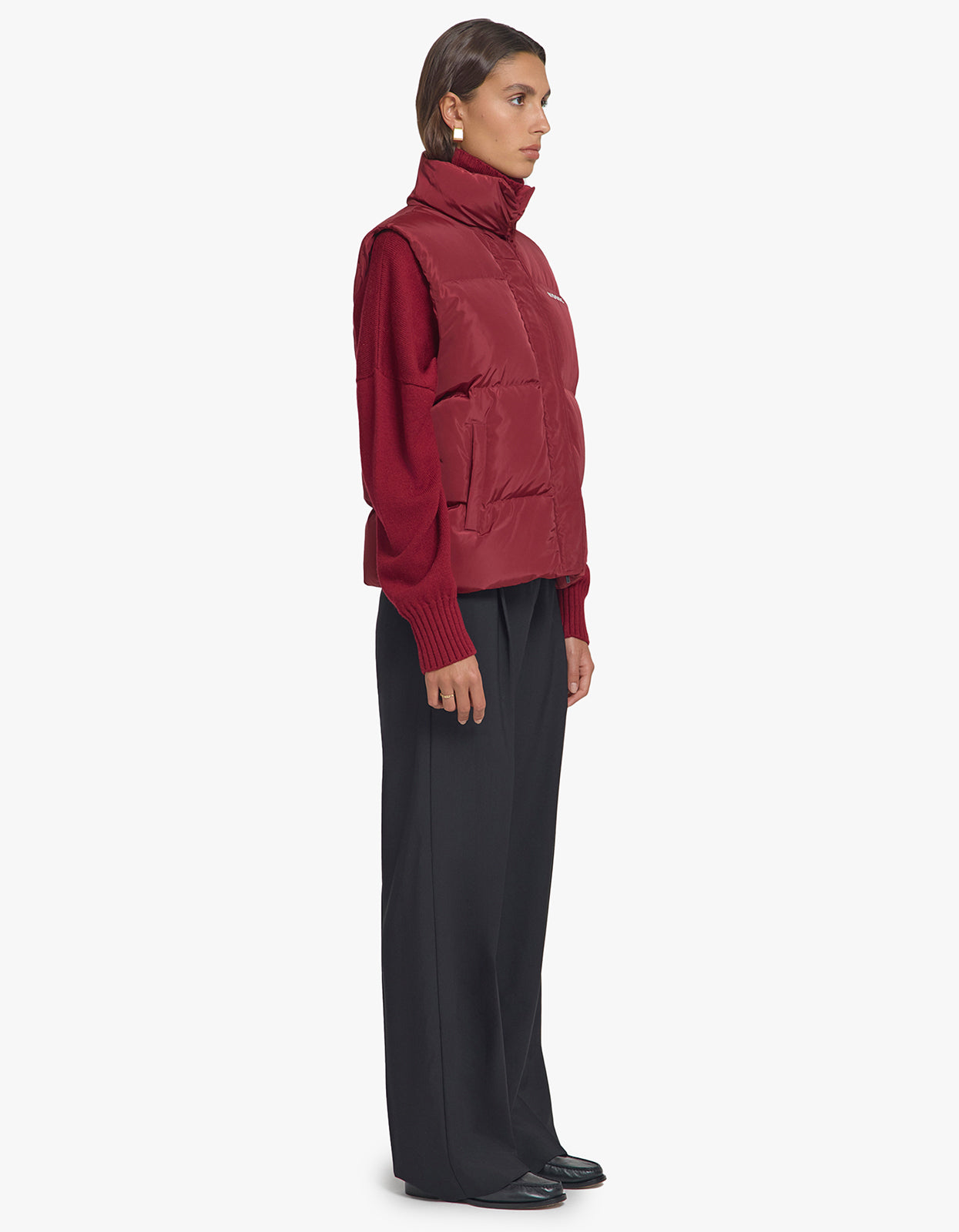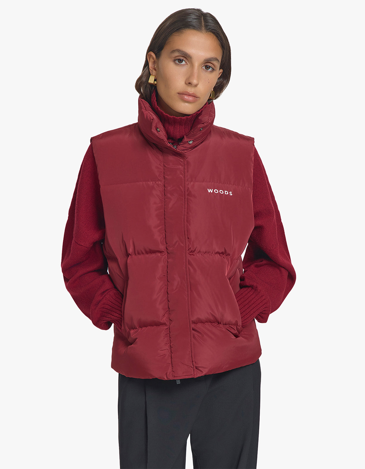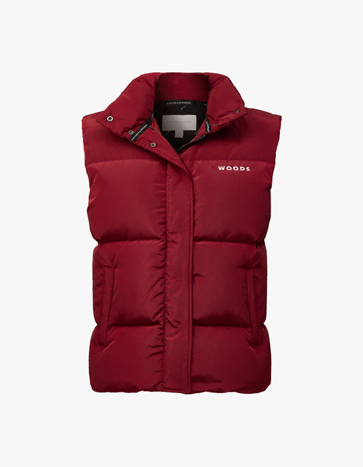Prepare for the chilly season with our Galactic Puffer Vest in Sangria from Viktoria and Woods.
