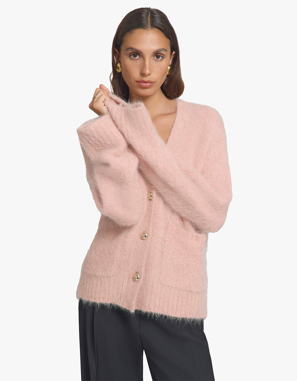 The Ontario Cardi in Bougainvillea Pink from Viktoria and Woods is a must-have for any fashion-forward individual.