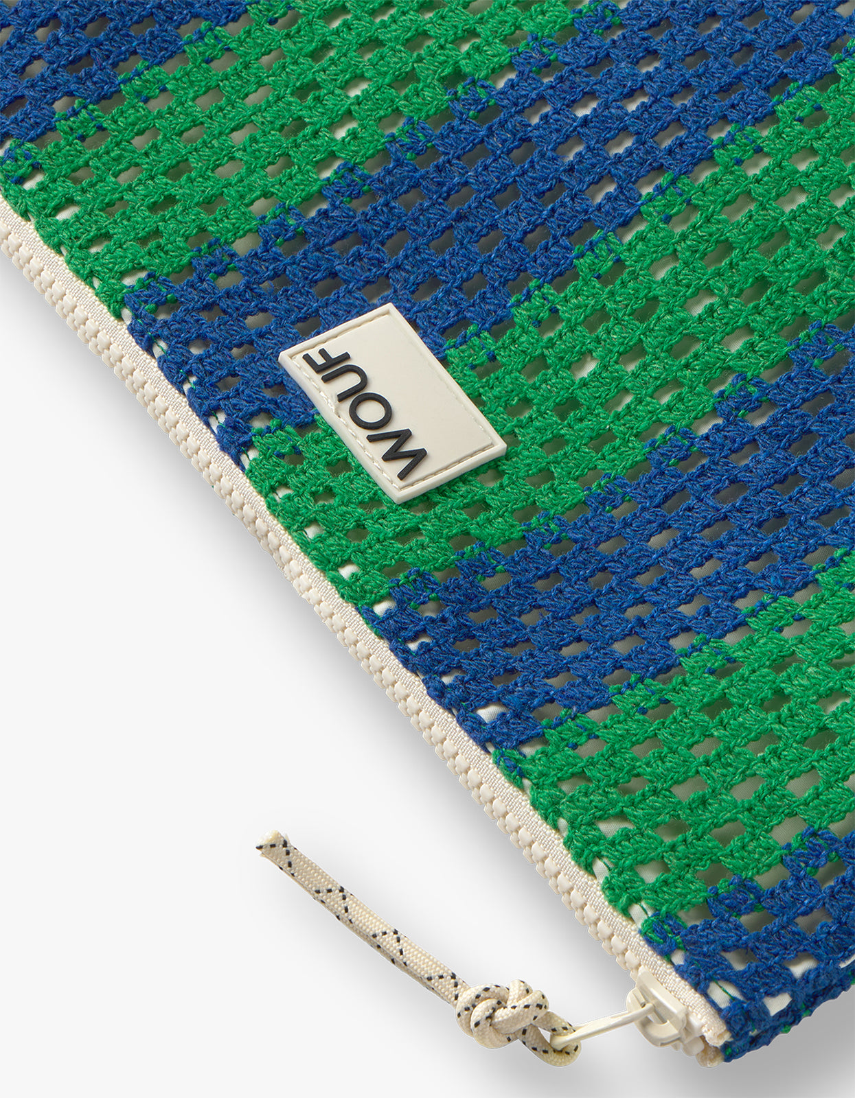 Handcrafted with a crochet technique and adorned with a stylish striped design, this pouch offers a touch of Mediterranean charm to your routine. Organise your keys, passport, and other small items effortlessly in its spacious single compartment. From our exclusive Crochet collection.