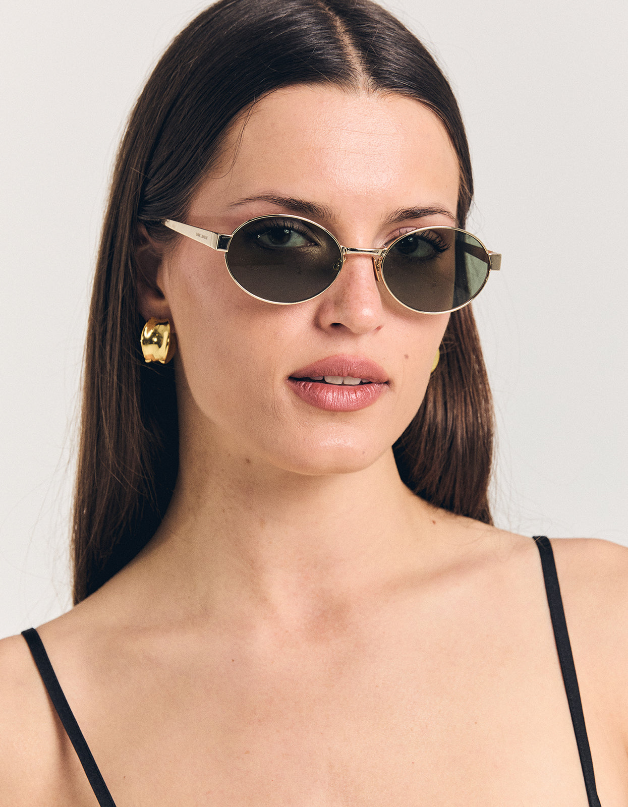 Accessorise with the luxurious SL692 Gold sunglasses from Saint Laurent.