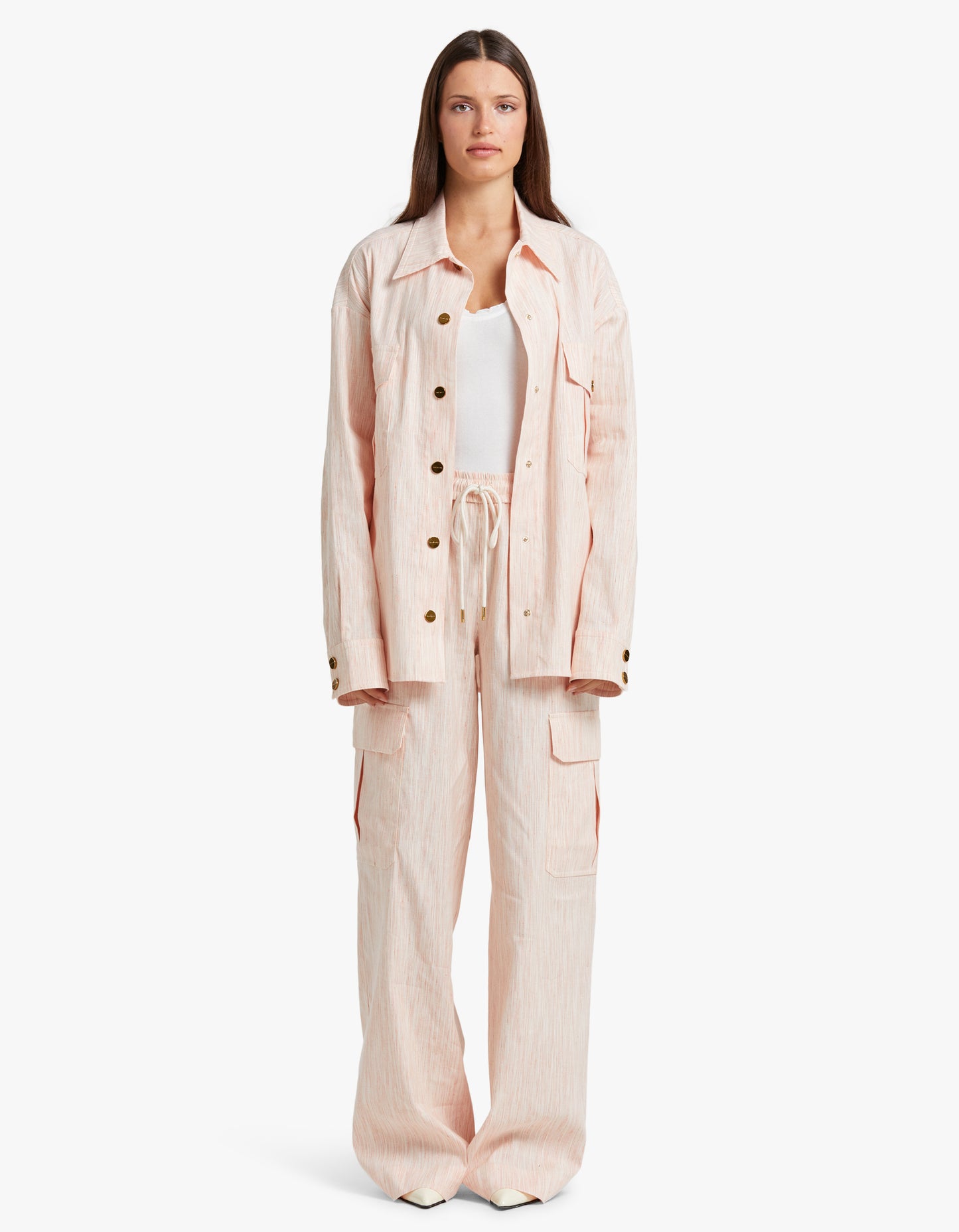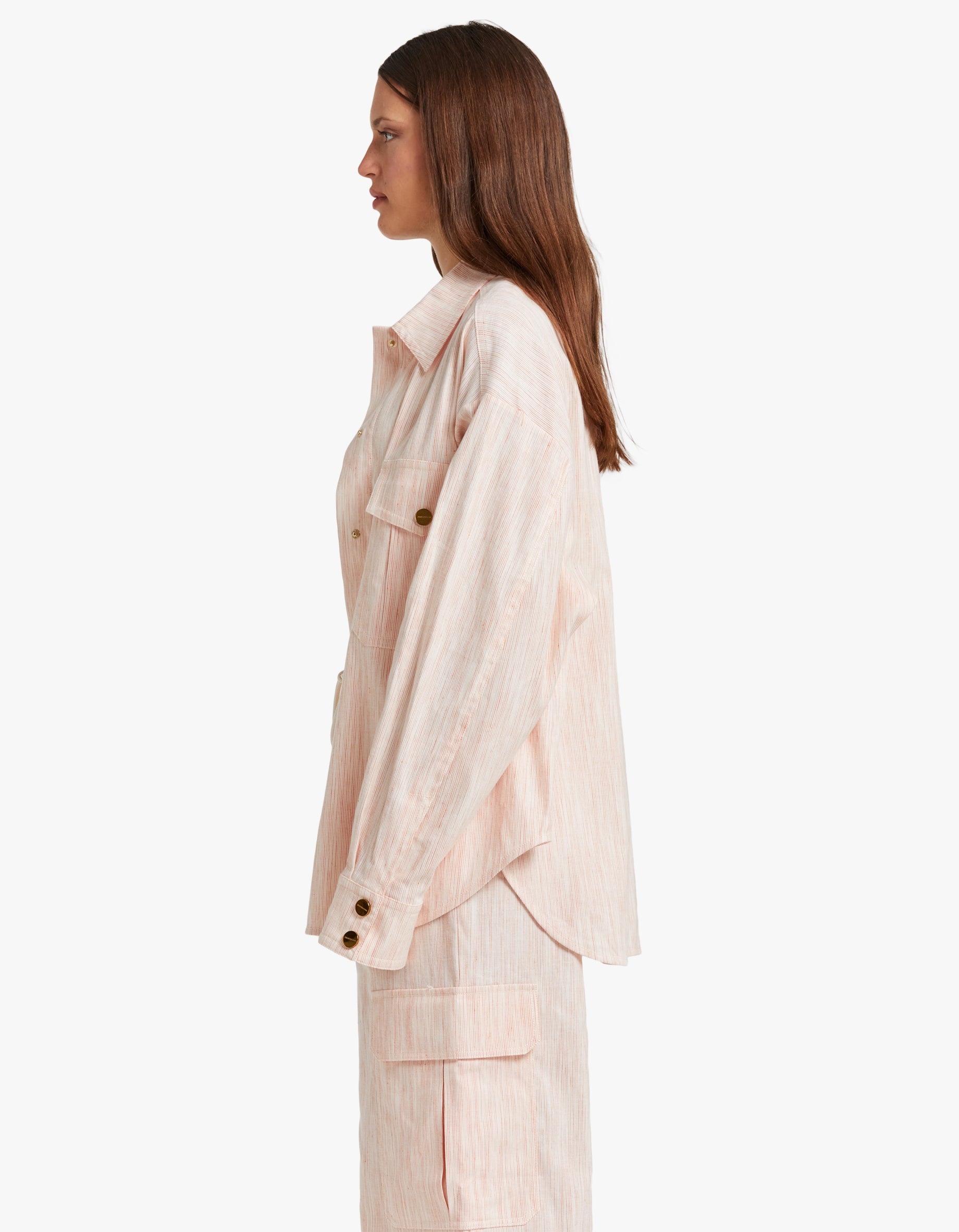 The Tranquility Stripe Shirt from Zimmermann is a luxe occasion piece.