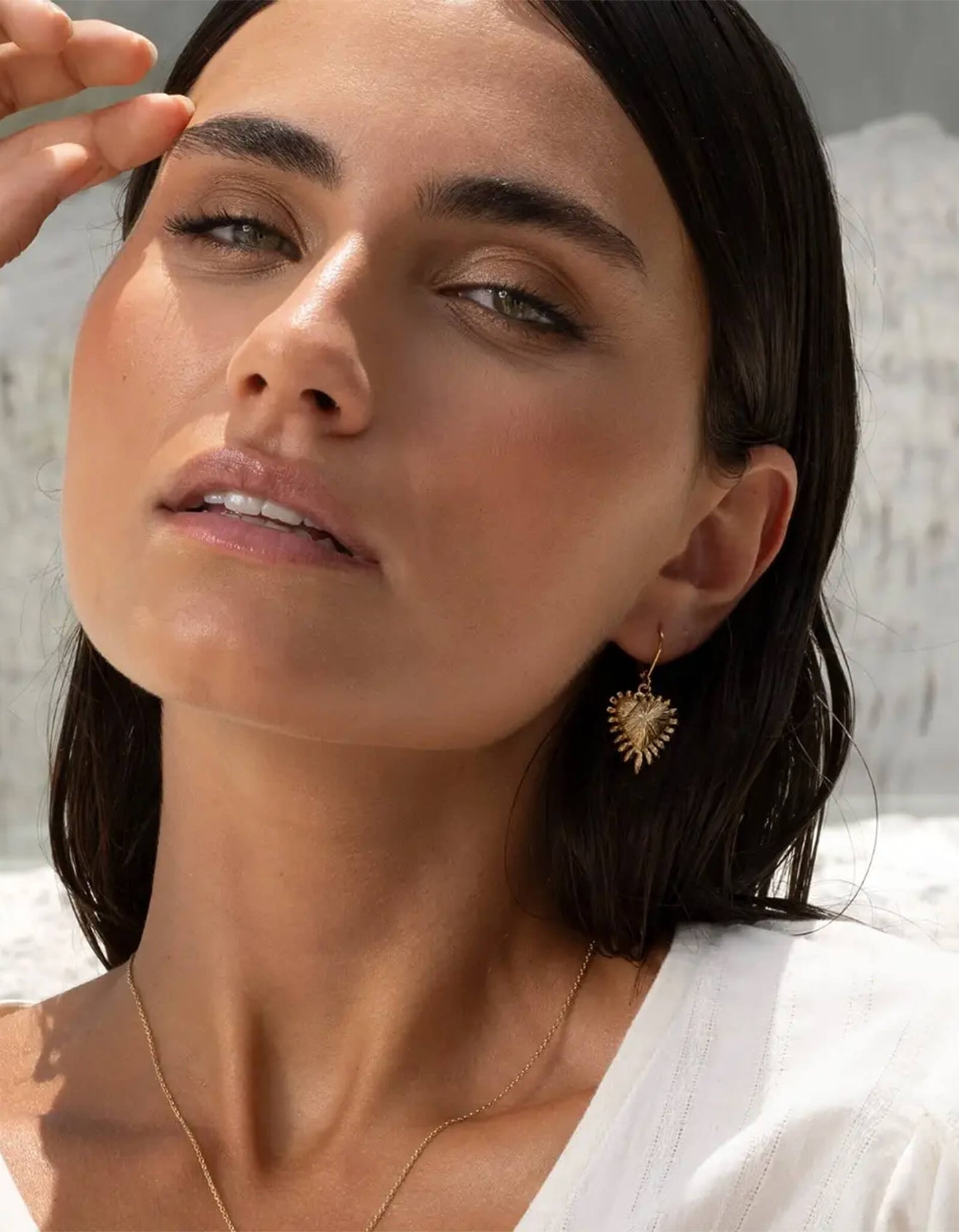 The prettiest little reminder that love is the strongest force of all, Zoe and Morgan’s Heart Rays Earrings are beautifully hand-carved and hung from a lever back hoop. Plated in 22k gold with a pure 925 sterling silver base, these are little treasures for daily wear.