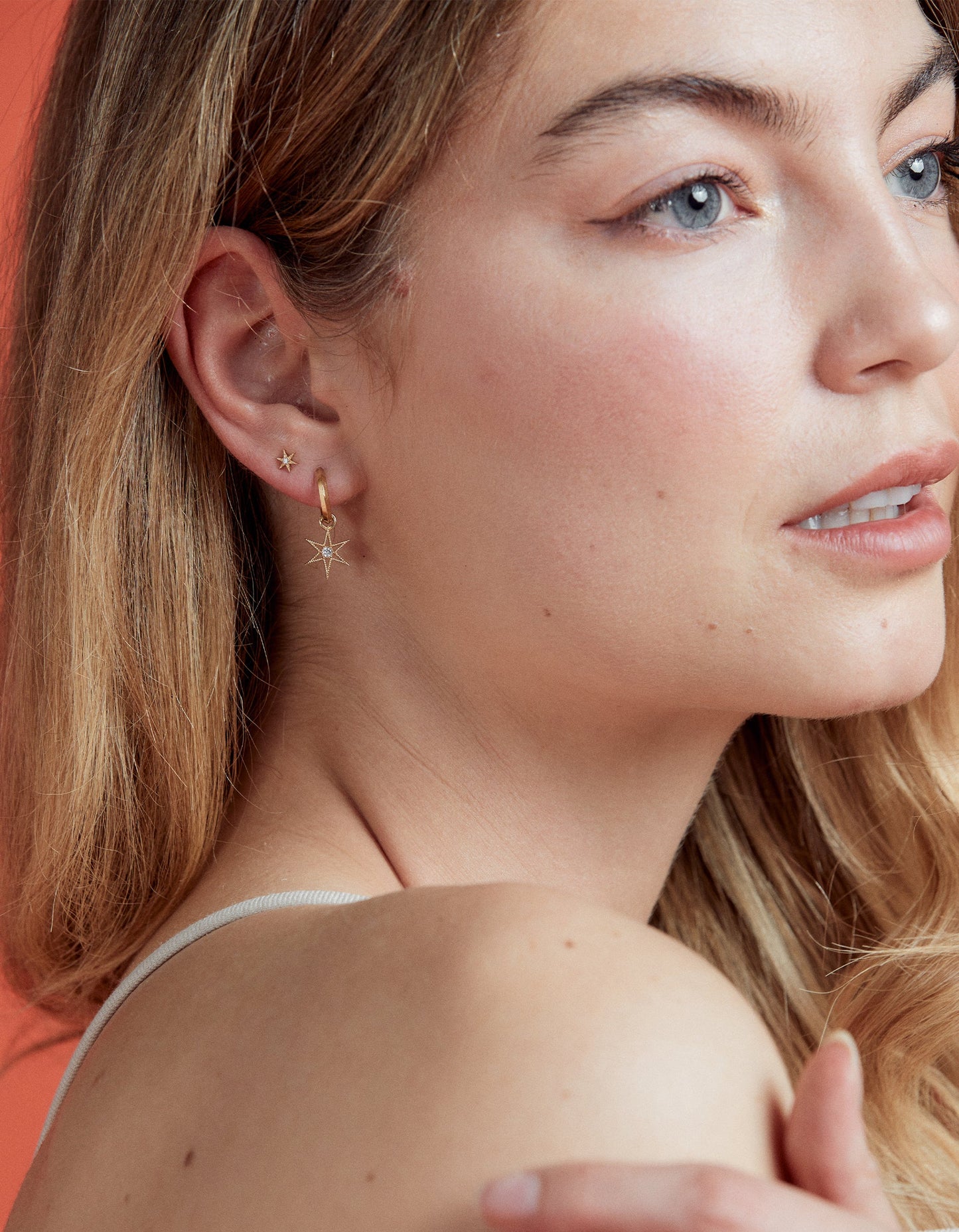 Crafted from a 22K gold plated base, this mini star design features a truly beaut white zircon stone at the centre. We love a little sparkle and know you do too - Wear these babies alone or stacked with your fav bling pieces.