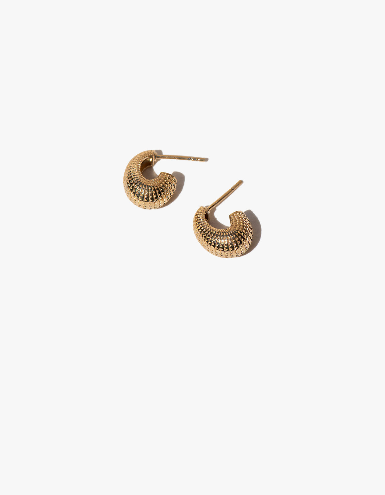 These exquisite 22K gold plated hoops are a collaboration between Superette and Zoe & Morgan, creating a unique and exclusive design. Elevate your style and make a statement with these stunning earrings.